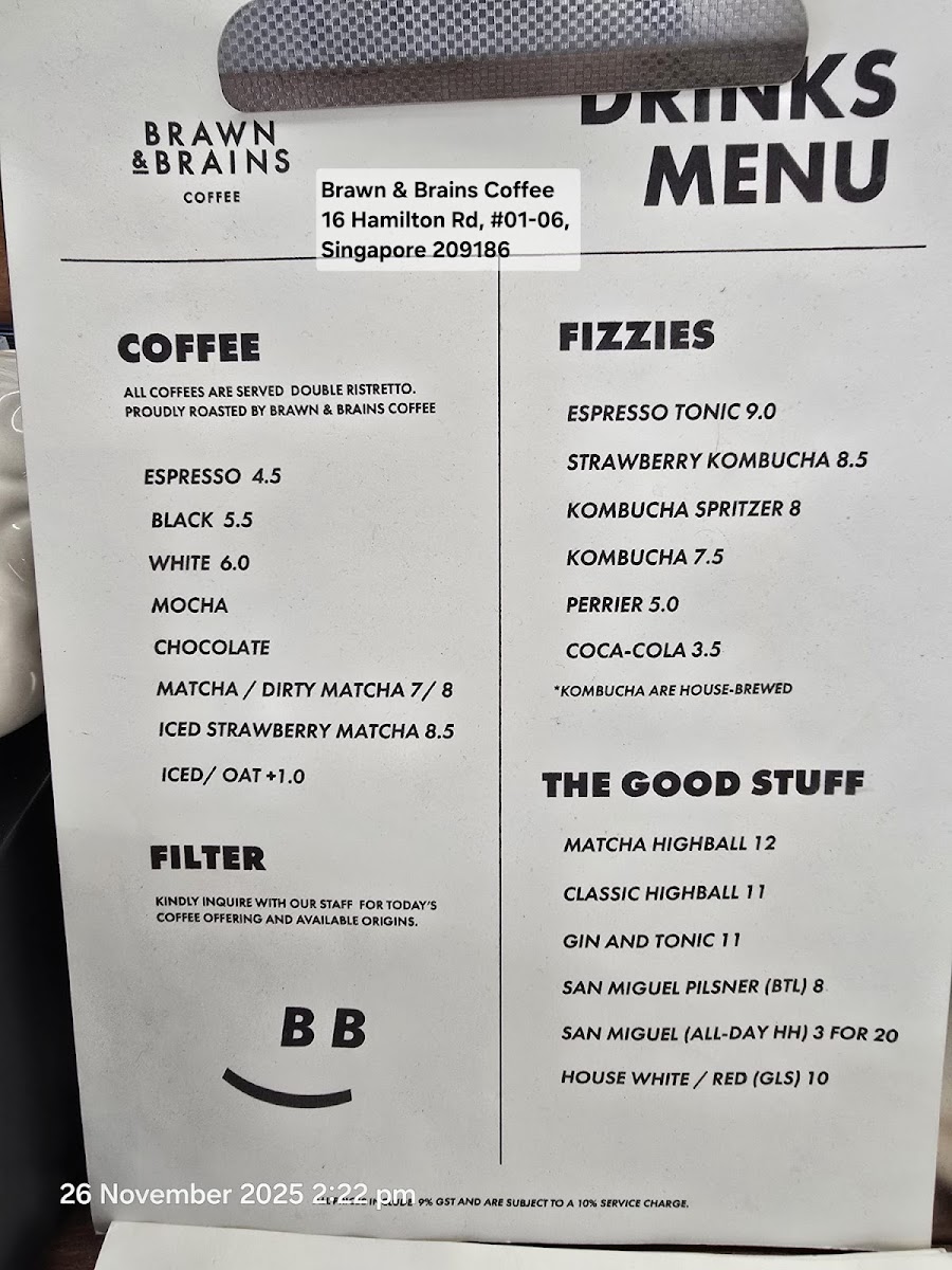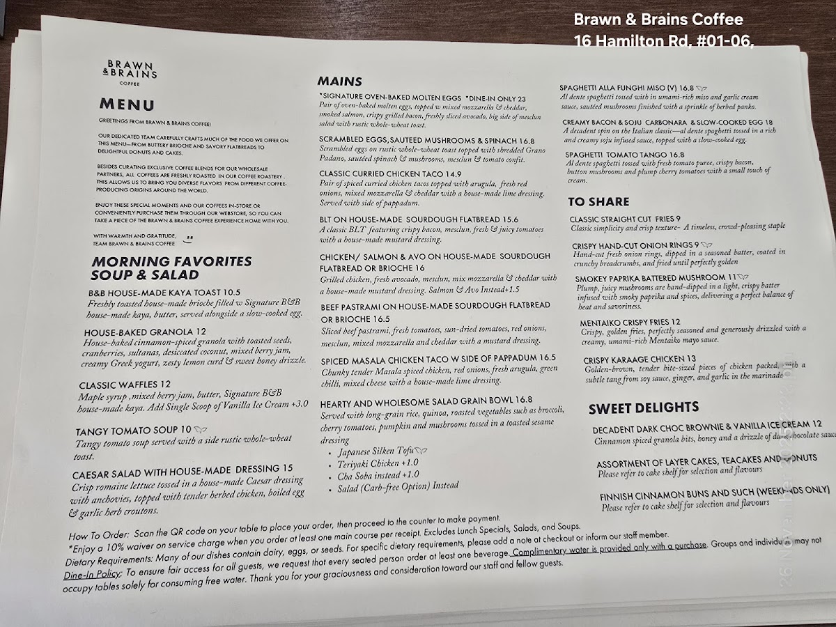 At Brawn & Brains Coffee - 16 Hamilton Rd Menu, you’re in for a real treat. Tucked away at 16 Hamilton Rd, #01-06, Singapore 209186, this café offers a menu that’s as inviting as its cozy atmosphere. Whether you're stopping by for a quick caffeine fix or a full meal, there’s something to satisfy every craving.
